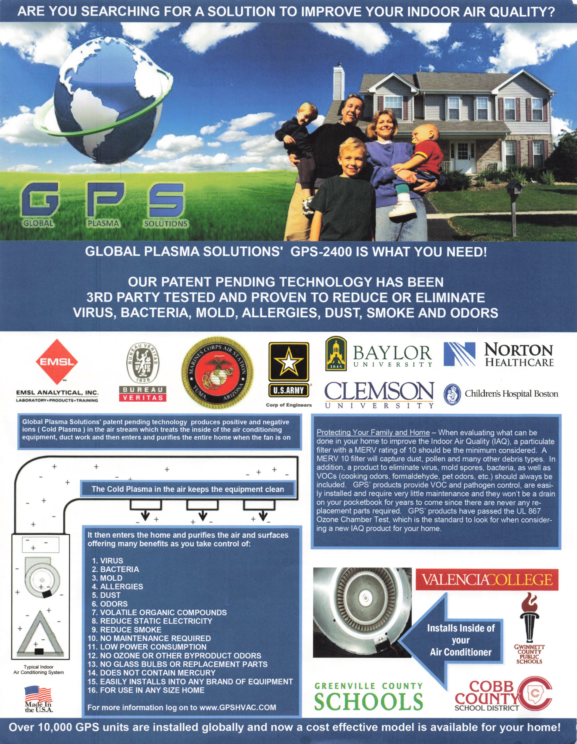 Nu-Calgon has partnered with Global Plasma Solutions (GPS) to bring a new, advanced air purification technology to the HVACR market. This patented technology called needle-point bi-polar ionization uses carbon fiber brushes to produce a refined electrical charge to proactively and safely clean the air in residential and commercial buildings. The iWave approach produces equal amounts of positive and negative ions (combined charge neutral) that react and break down pathogens, allergens, particles, smoke, odors and VOCs in the air, creating a healthy environment